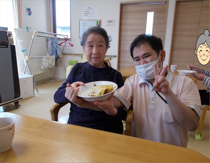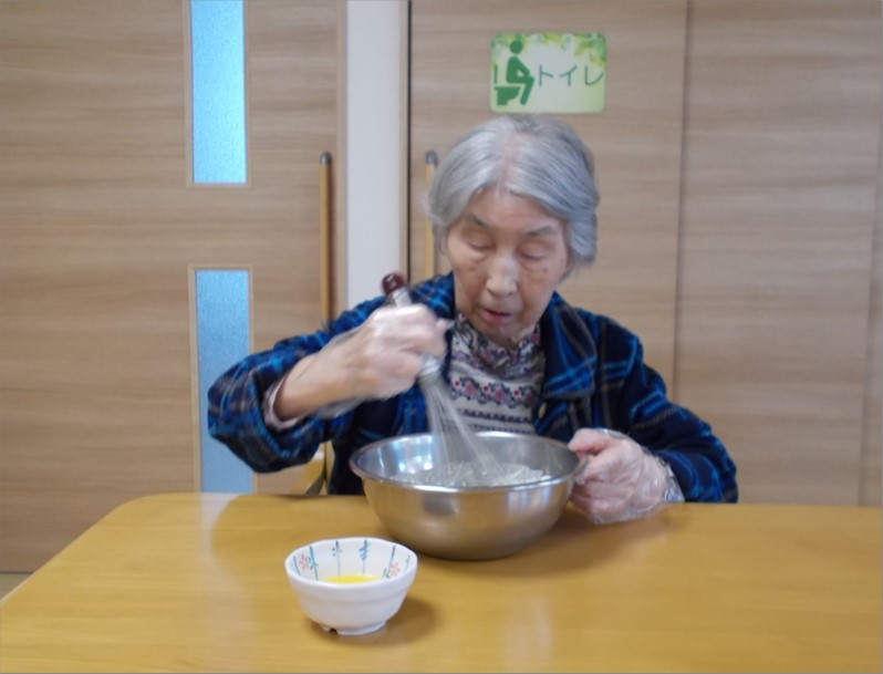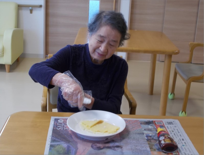 ご入居者様方と職員が一緒に行う春のクレープ作り。昨年に続いて今年も開催しました!