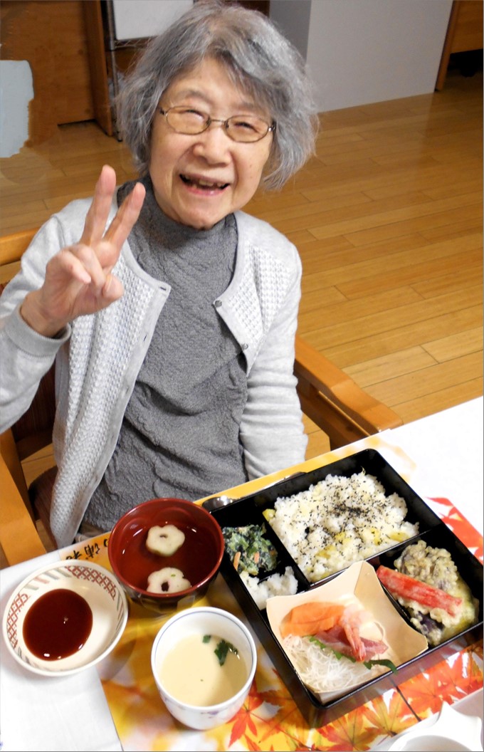 豪華な味覚弁当に皆様笑顔!!「美味しいわ」「たまには贅沢もいいね」「お刺身が食べられるなんて嬉しい」美味しいものを食べると自然と顔がほころびますね。