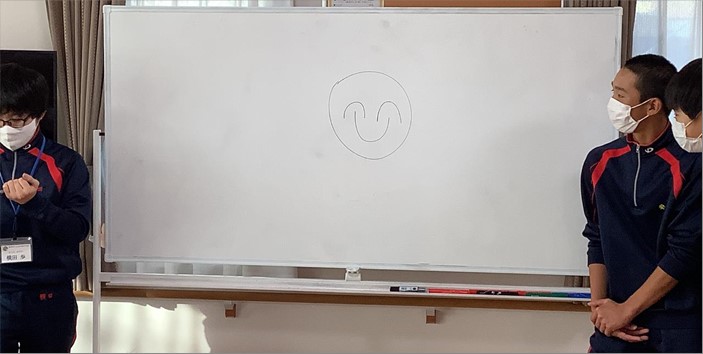 ゲームを行いました。「豆腐」「東京スカイツリー」「シャインマスカット」のほかに、「にっこりマーク」を描いてくれました。これにはわけがあります。☺