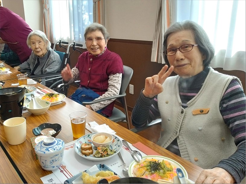 『古正寺の杜』では、入居者様の人数が多いため忘年会は2回に分けて開催します。