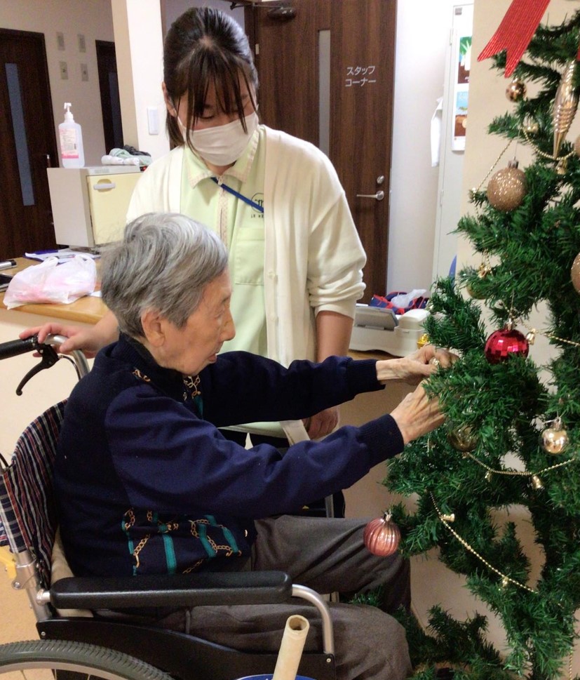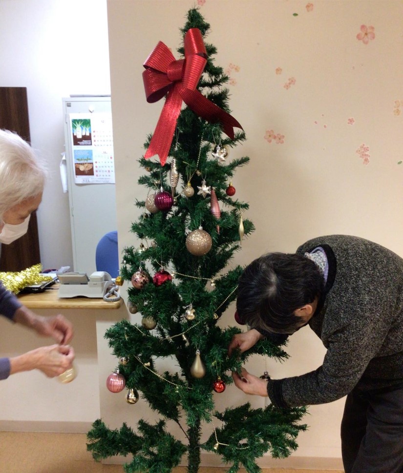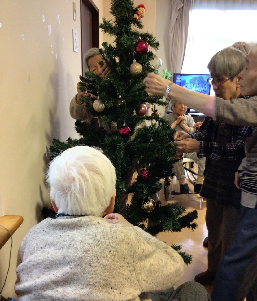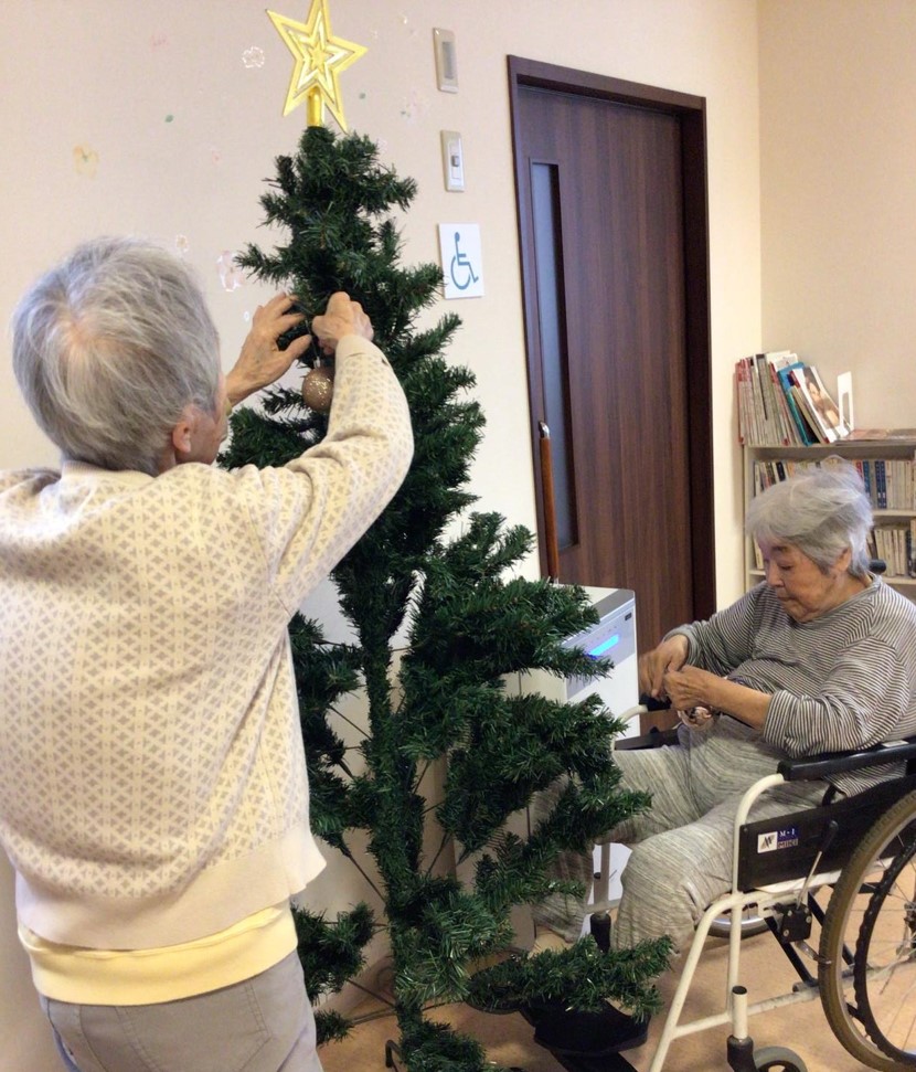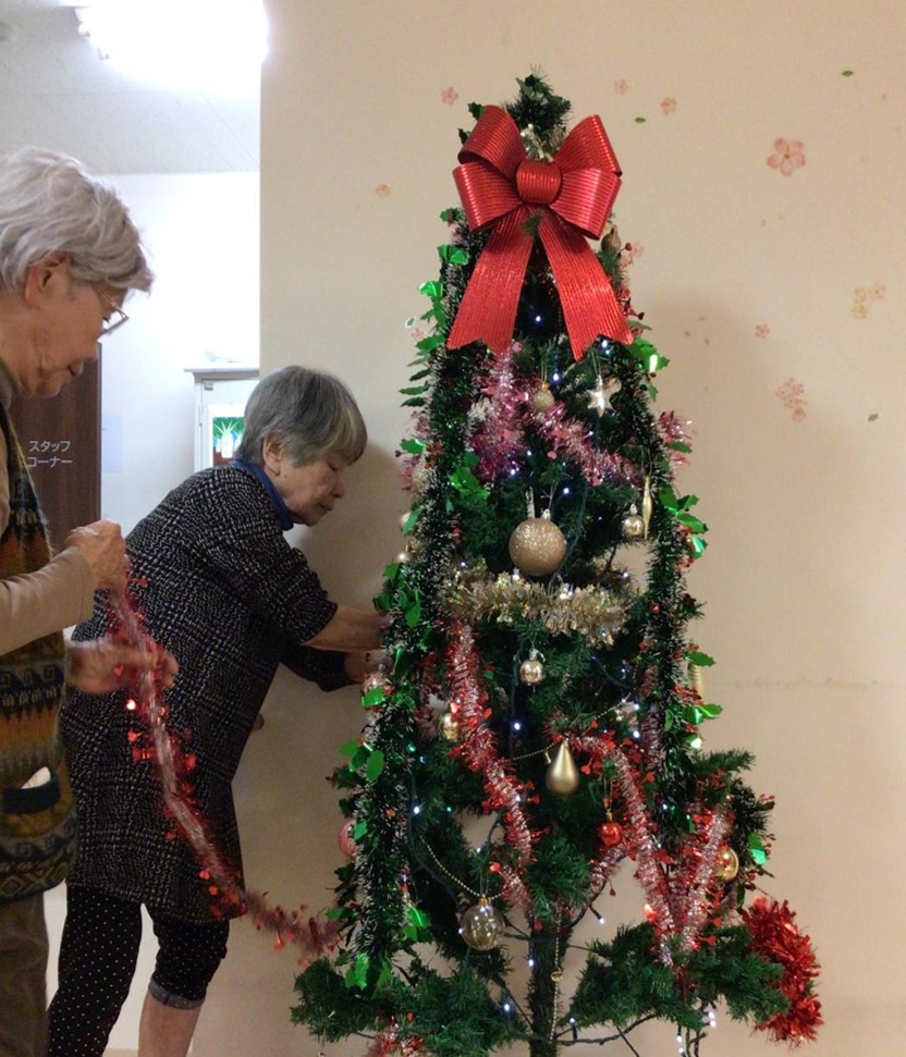 今回は、クリスマスツリーの飾り付けをお手伝い頂いている、ご入居者様皆さまのご様子をお届けしたいと思います。