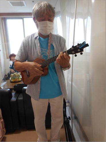 ご入居様がご存知の歌もたくさん演奏して頂きました。フロアにウクレレの優しい音色が心地よく響いて目を閉じて聴き入れば、飛行機に乗らずとも気分はハワイです!