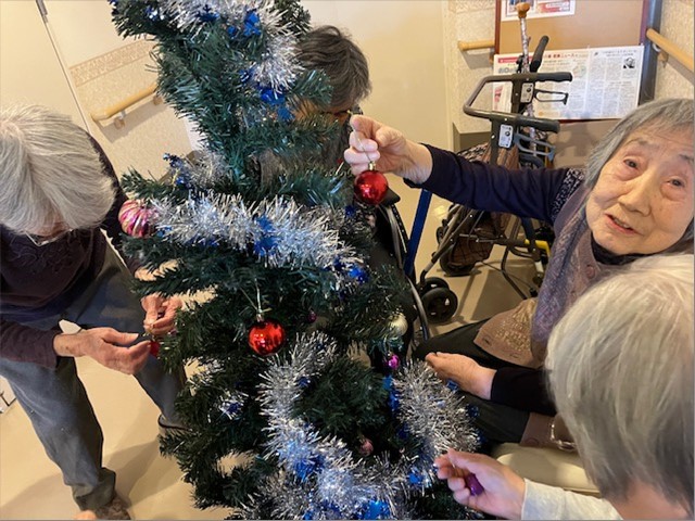 ご入居者様と一緒に飾ったクリスマスツリー!!
