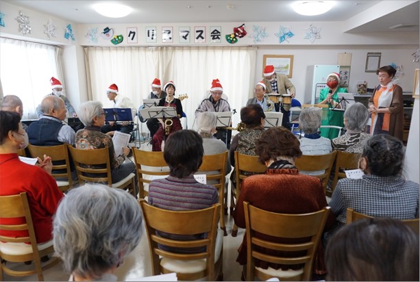 クリスマスソングや昔懐かしい曲を楽器の演奏や綺麗な歌声で楽しませてくださいました。