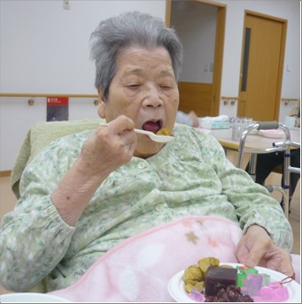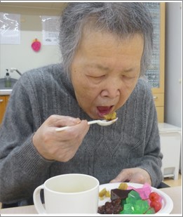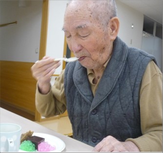 1階では、おやつのレクリエーションとして、ようかんとゼリーの盛り合わせを召し上がって頂きました。