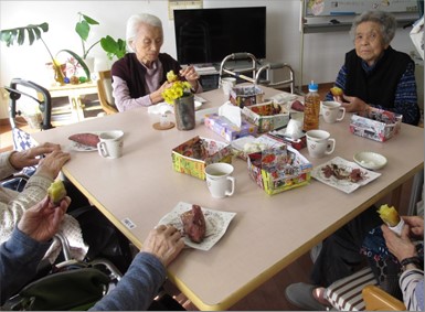 2階では、ご入居者様のリクエストにお答えし「焼き芋パーティー」を行いました。
