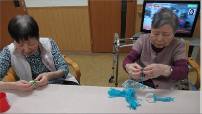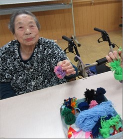 3階は、毛糸を使ってミニ帽子とミニリース作りを行いました。皆様器用であっという間に出来上がっていました。