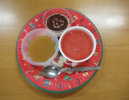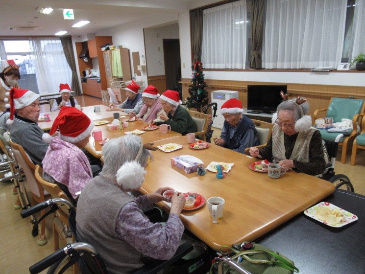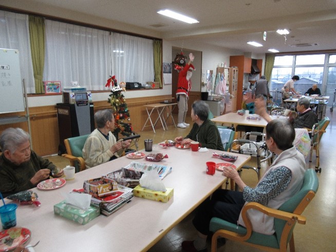サンタクロースからプレゼントをお渡しし、おやつにスイーツ盛り合わせをお召し上がり頂きました。