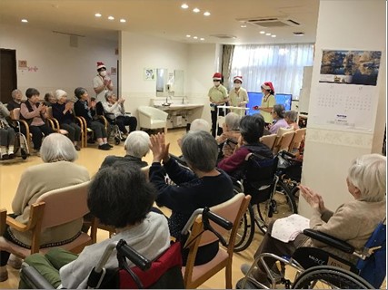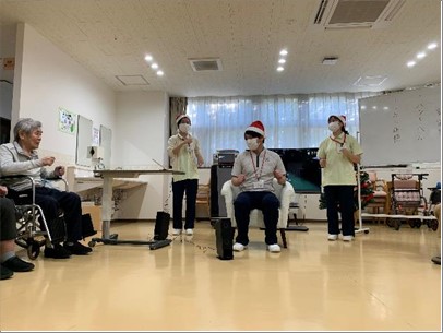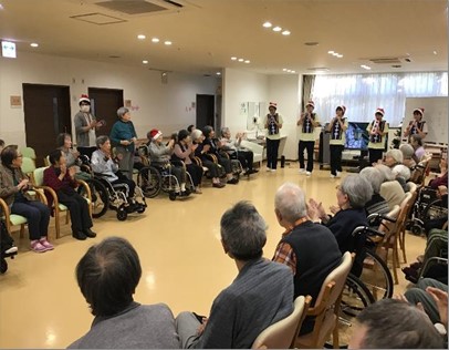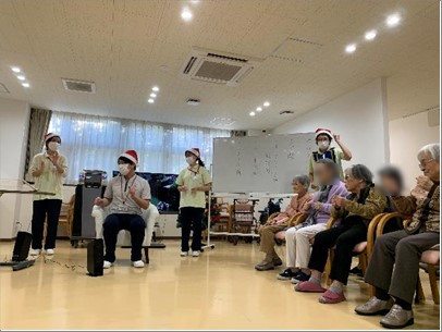 職員は緊張している様子も見られたが皆楽しそうに演奏し、ご入居者様から歌声や手拍子も沢山頂きました。