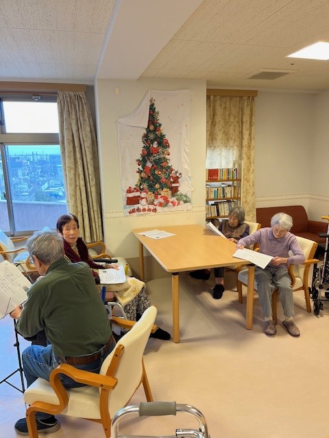 赤鼻のトナカイやきよしこの夜などみんなが聞いたことのある楽曲を入居者様のハーモニカ演奏とともに歌いました。