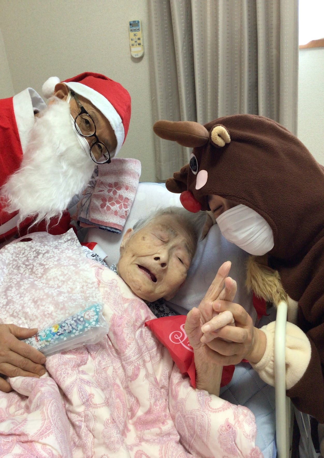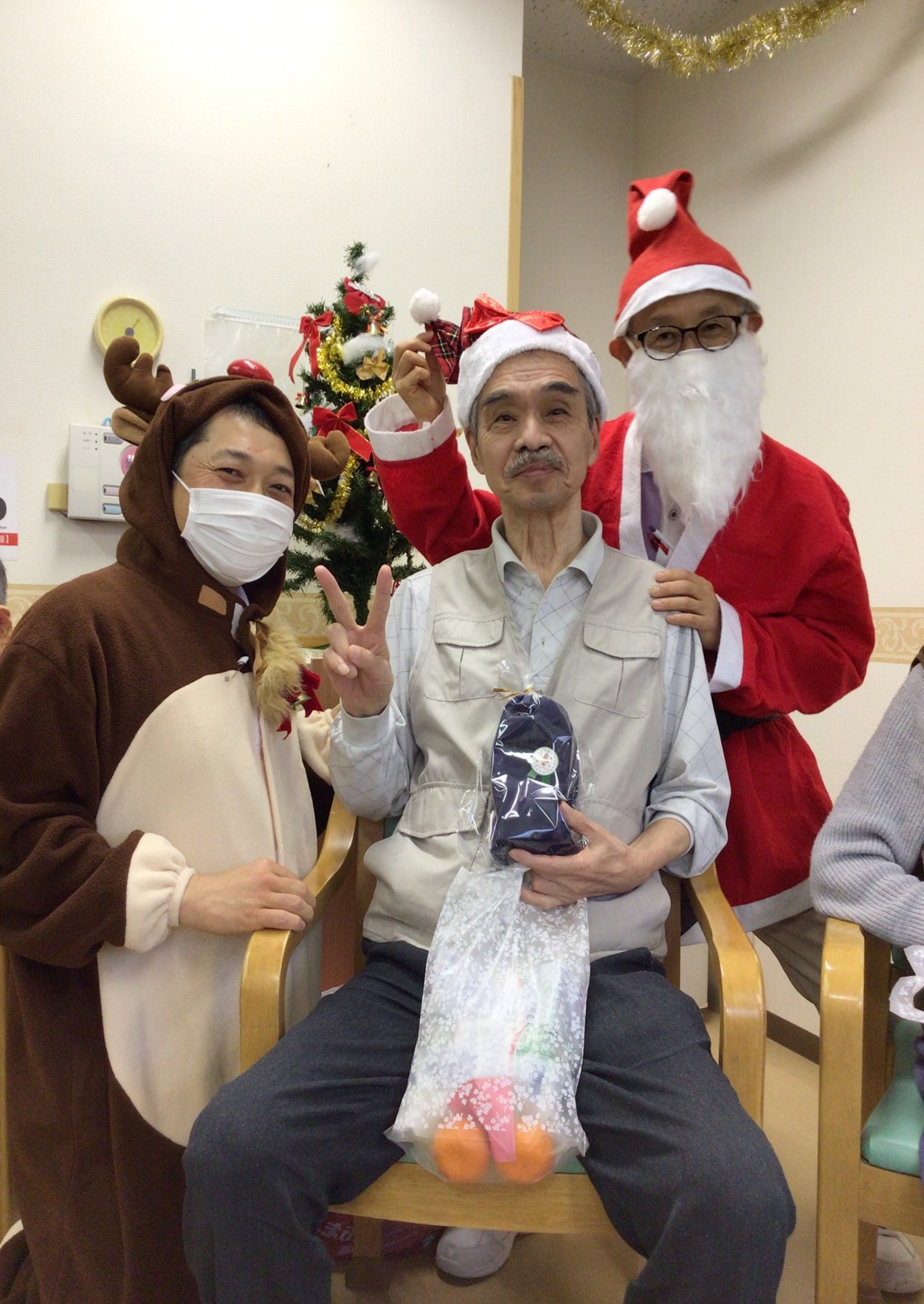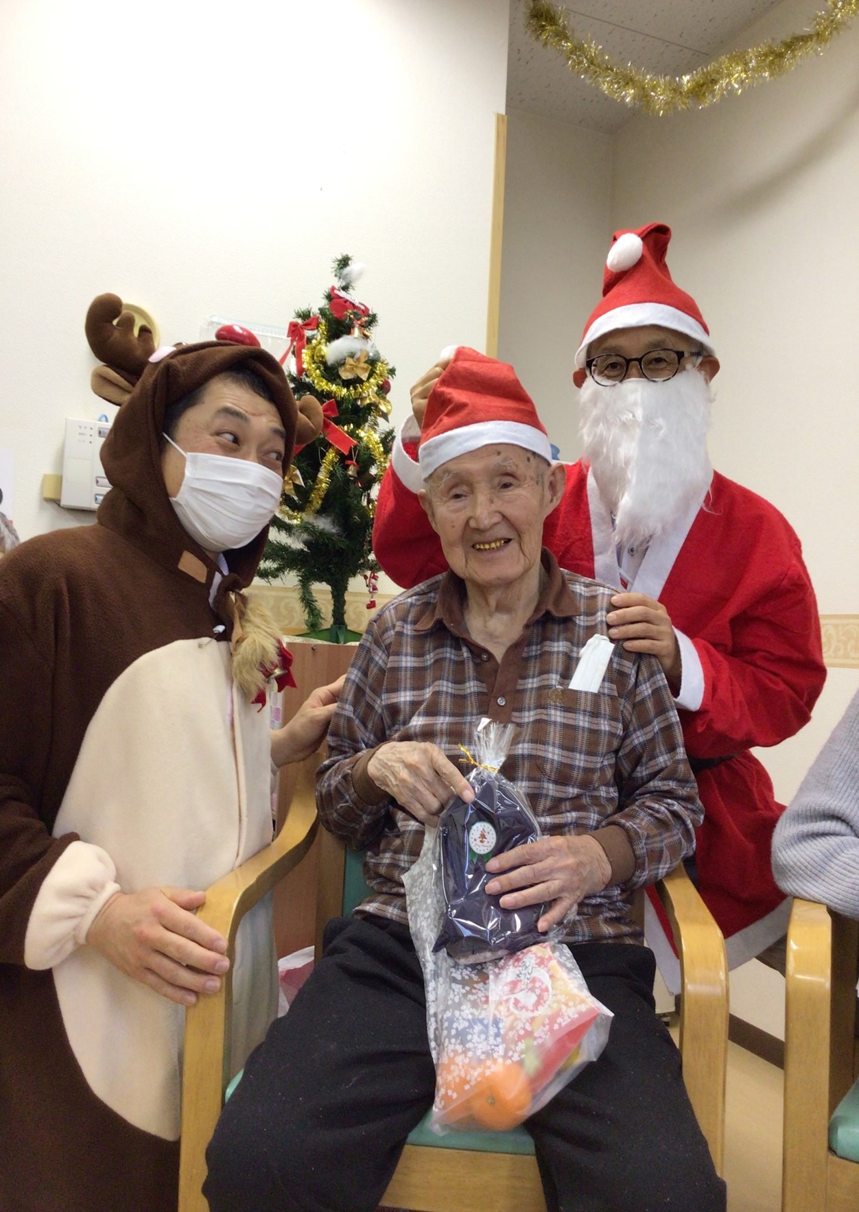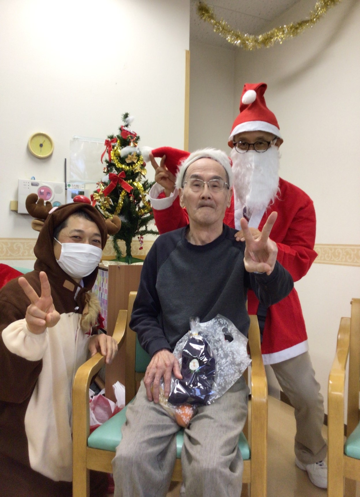 最後に、プレゼントをお渡しして、サンタクロース&トナカイさんと写真撮影をしました。