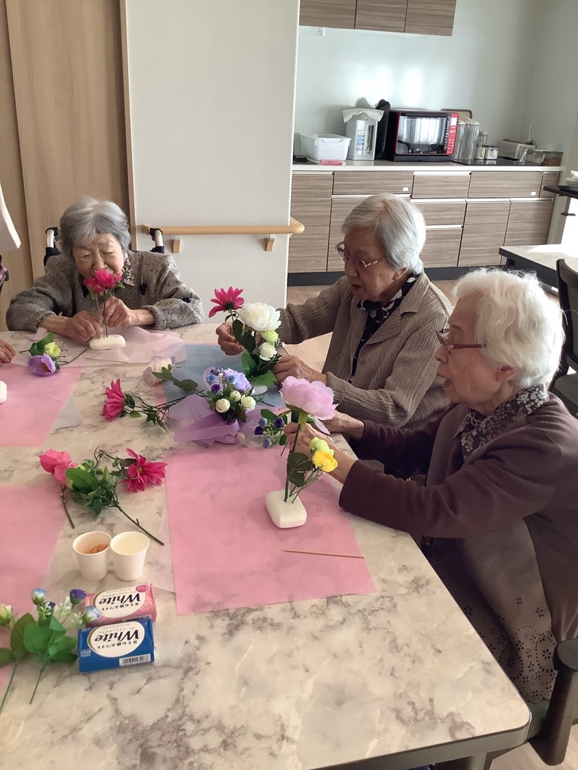 鮮やかで個性のある素敵な作品ができました!お互いに作品を見せ合いながら「素敵ね」と仰られていました。