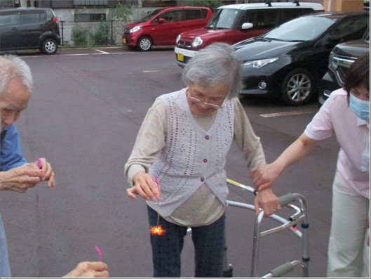 初めての企画でしたが入居者様に満足いただくことができました。来年はさらにバージョンアップした花火大会にしたいと思います。