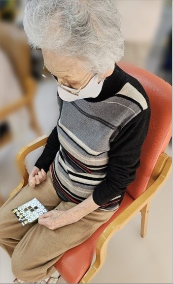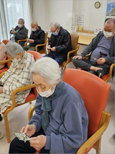 進むにつれて「ビンゴー!!」と元気よく声を出す人や「揃ったよ~」とそっと職員にカードを持って来られそれぞれ楽しまれてます。