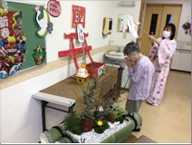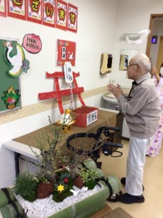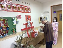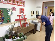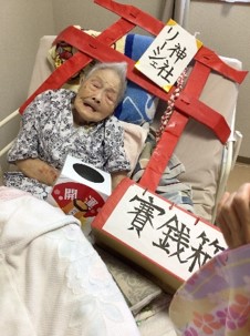 本物の神社の様に、職員が扮する巫女さんからお神酒(甘酒)をいただき、美味しそうに飲まれていました。