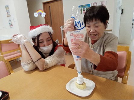 クリスマスケーキを皆様で美味しく召し上がり、クリスマス会を楽しみました(^^♪