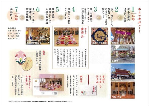 増上寺境内のご紹介に始まり、干支の辰に因んだスポットを巡り、増上寺雅楽会での演奏を聴き、雅楽にまつわるクイズ大会にも参加し、最後はこれから一年の健康を願う御祈願の様子を見ながらみんなでご祈祷するといった流れでした。