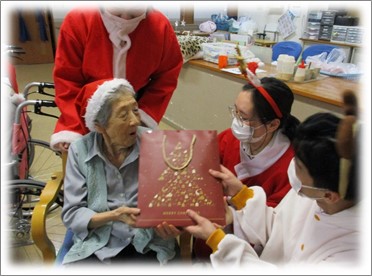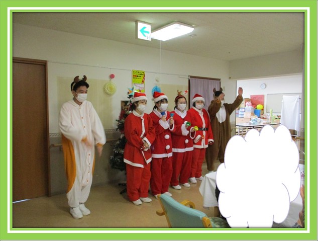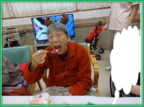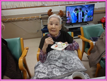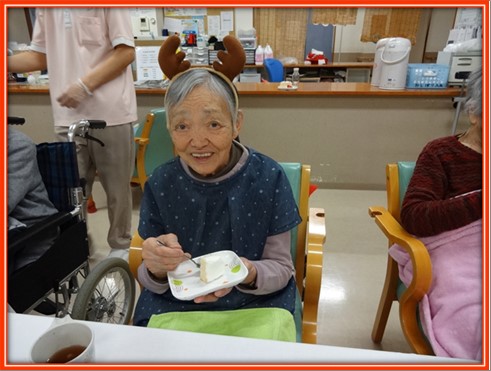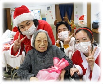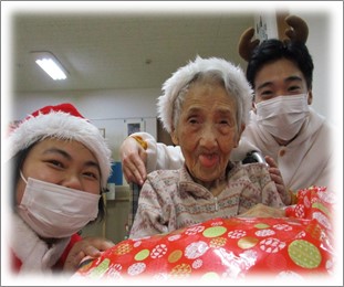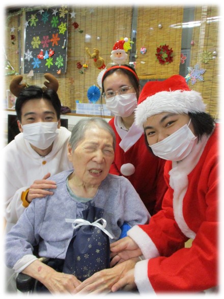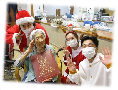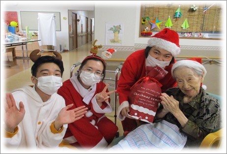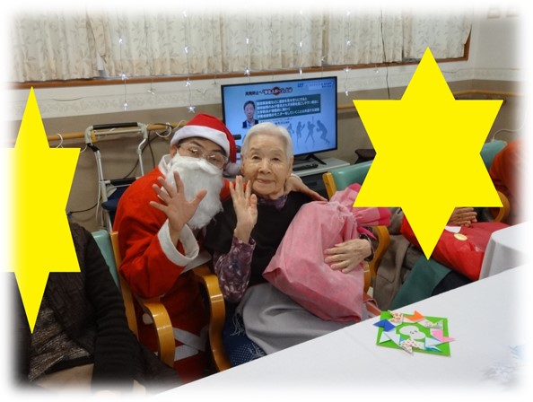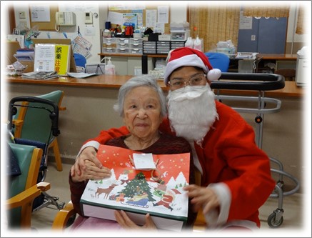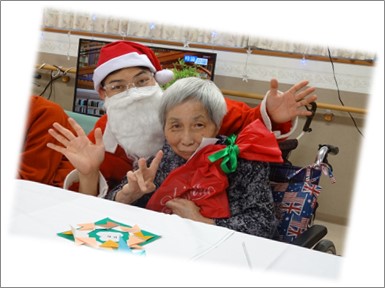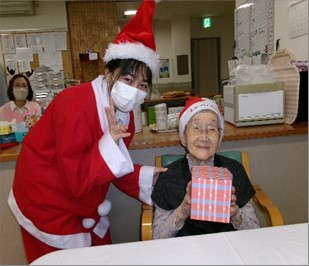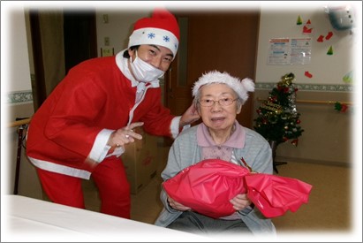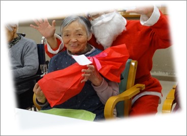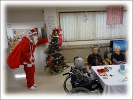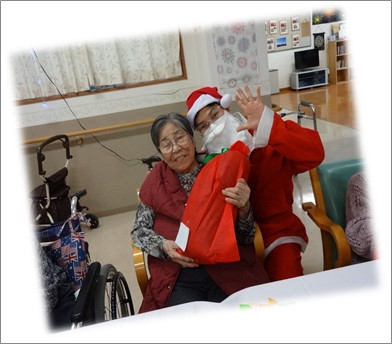 サンタさんより皆様にささやかながらプレゼントを贈呈。ご入居者様からは「何が入っているんだろ」、「一緒に開けてみようよ。」との声が聞かれました(*^▽^*)