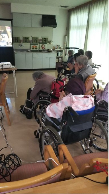 音楽が流れ、案内に合わせて皆様『合唱🙏』。