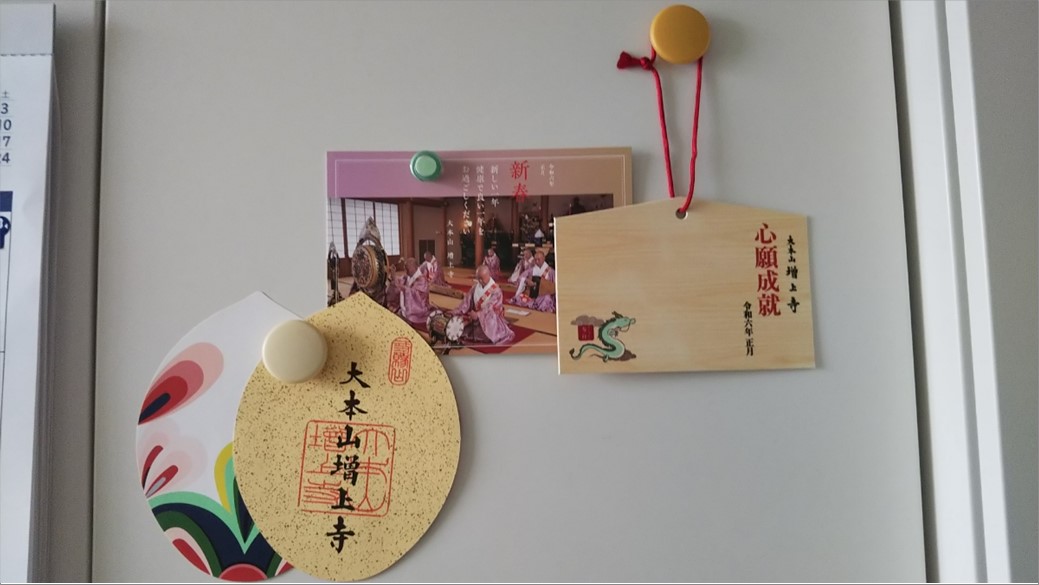 御祈祷された絵馬やお札は、皆様お部屋に持ち帰り。そして皆様の健康を願う『健康管理室』にも飾られていました。