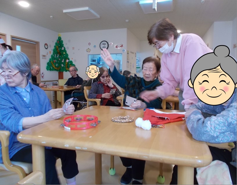 今年のクリスマス会は、先にビンゴになったご入居者様からプレゼントをゲットできるシステムを導入させていただきました。