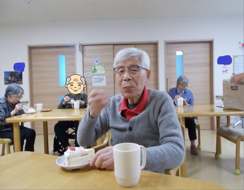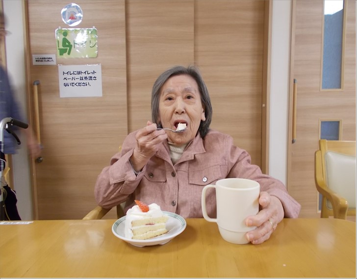 その後の3時のおやつにはクリスマスケーキを提供させていただきました。ご入居者様方には「すごくおいしい」と大好評でした!