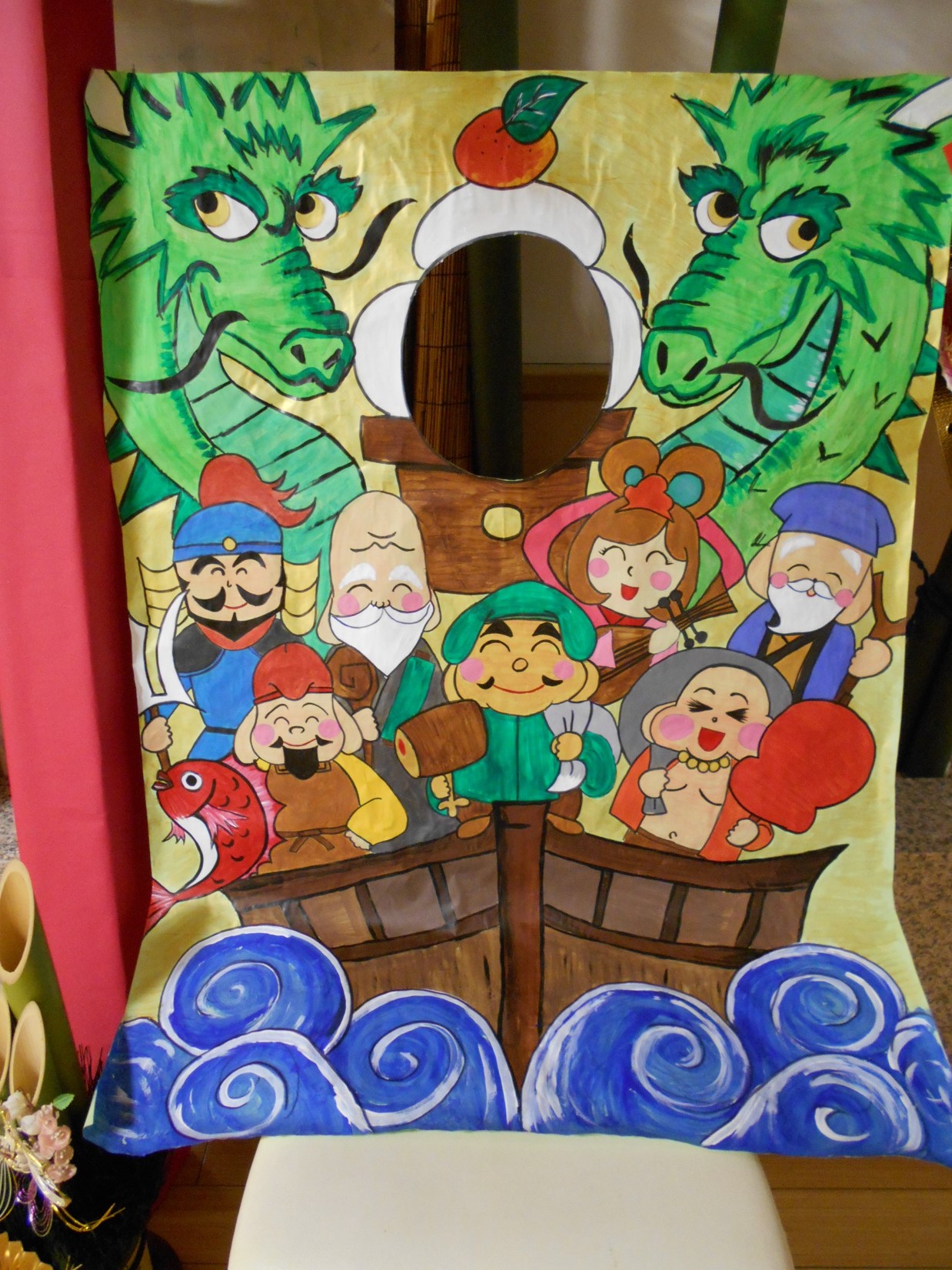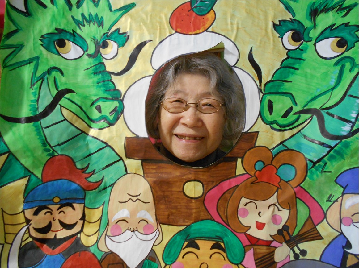 今年は干支の顔出しパネル、おみくじ、お年賀で甘納豆をお配り致しました。