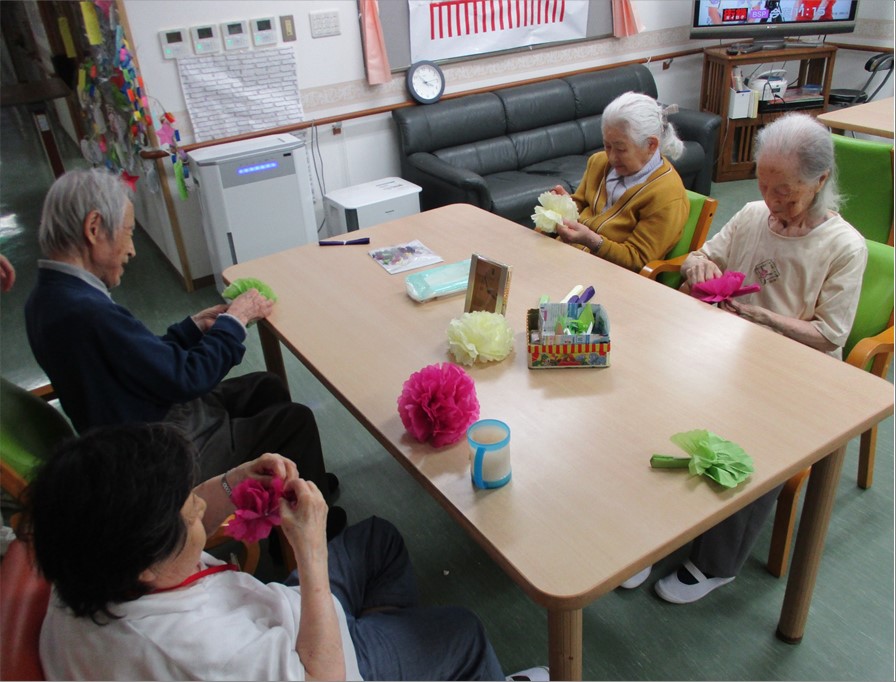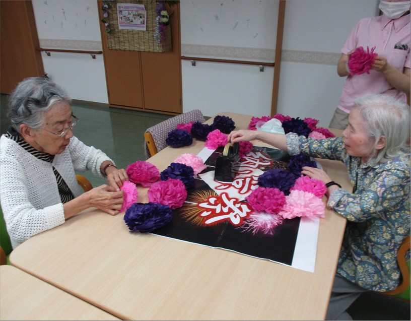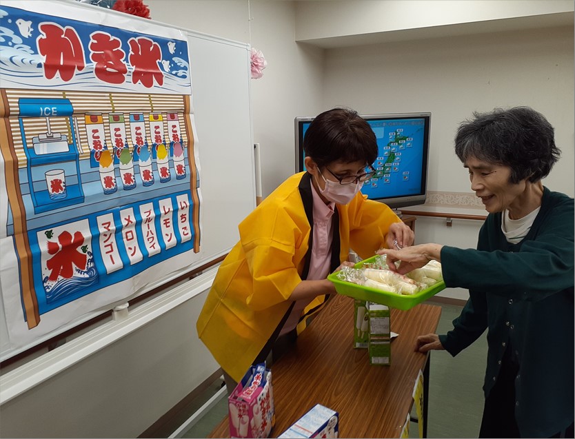 『リーシェガーデン和光(特定施設)』では、納涼祭に向け、一週間前から入居者様と一緒に夏祭りの準備をして、祭りムードを盛り上げていきました。