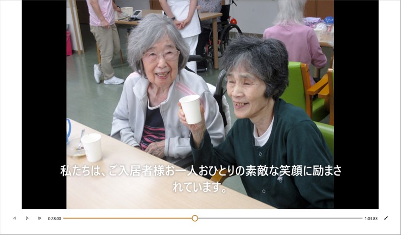 また、思い出振り返りスライドショーが流れると「あら私だわ」「懐かしいわ」と、あちこちで笑顔と笑い声が響いていました。