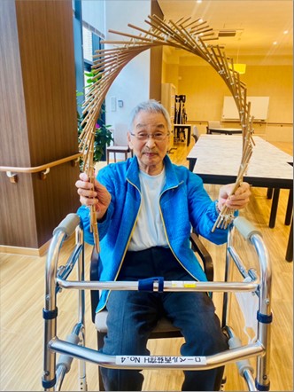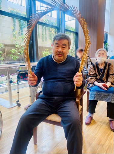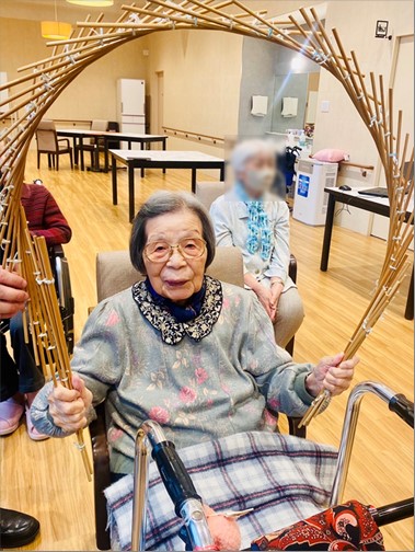 ご入居者様にも体験して頂こうと、「観音様」の形を作って頂き皆さんに持って頂きました。