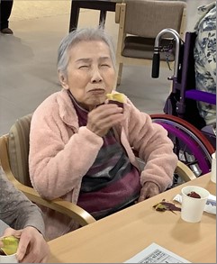 味わいながら召し上がってくださる様子が伝わってきます。久しぶりにご入居者様全員が一緒に集まったので、お話もはずみ、活気のある焼き芋会となりました。