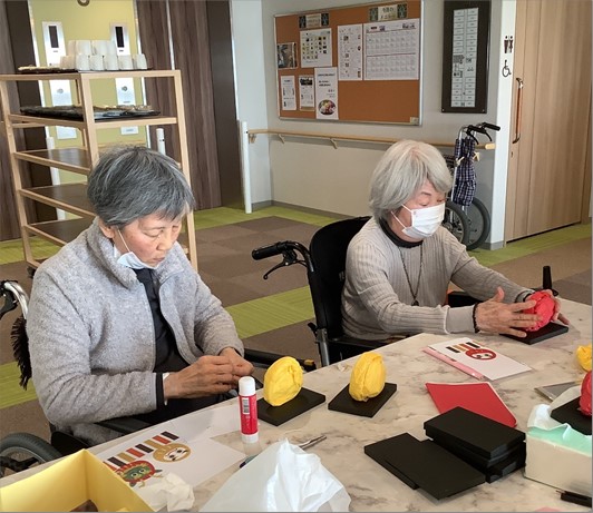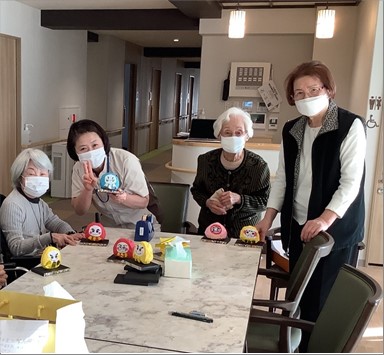 先日、ご入居者と縁起物のだるまを作りました