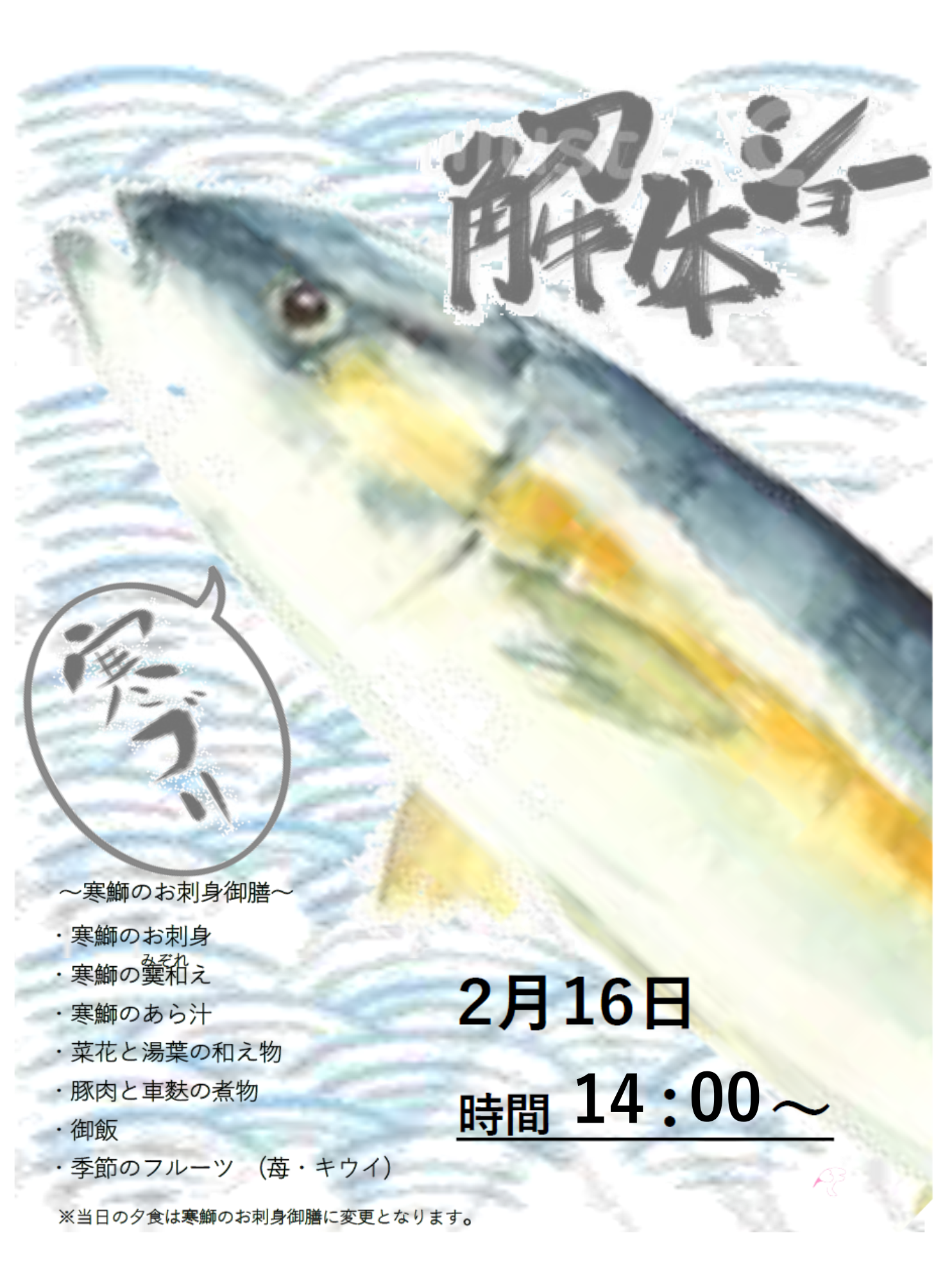 来る2月16日(金)に「寒ブリ解体ショー」を『ローベル上井草』で行います。