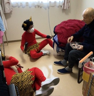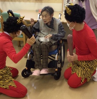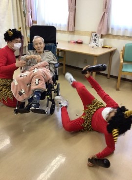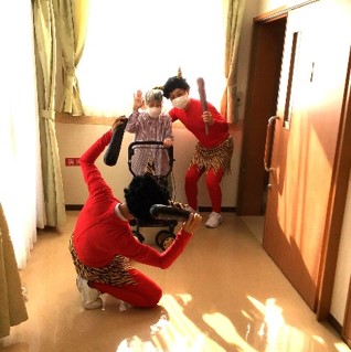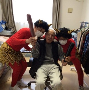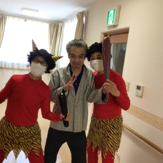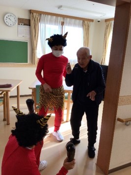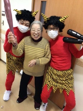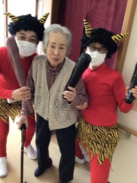 『リーシェ安行』では毎年恒例となっている豆まきを、赤鬼さんと一緒に行いました。