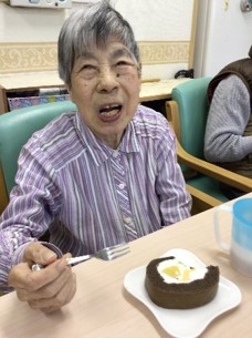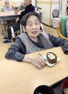 巻きずしの”恵方巻”はお出しできませんでしたが、お昼のデザートに『恵方ロールケーキ』を召し上がっていただきました。