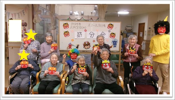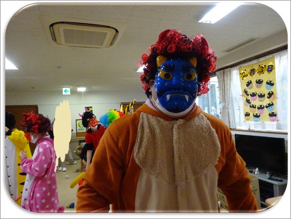 グループホームでは最後に鬼と一緒に集合写真を撮りました(^^)