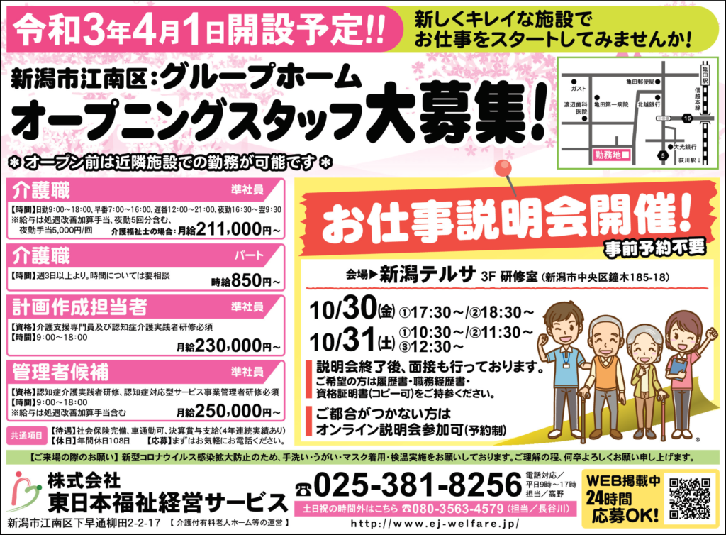 ※10月25日(日)に、新潟日報社の週刊求人情報折込『日報わーくる』にも掲載させていただきました。