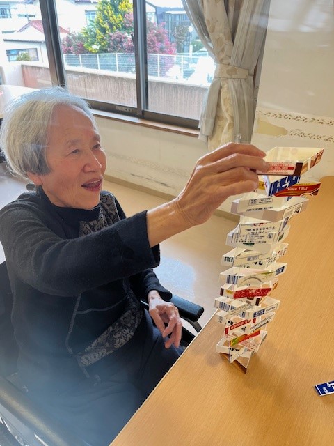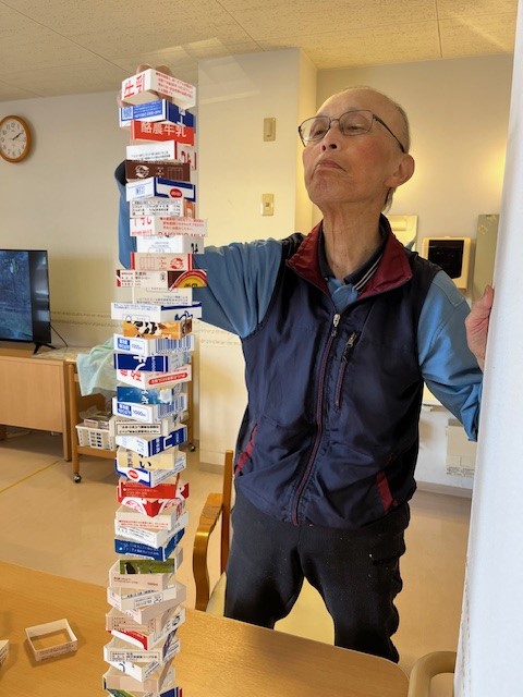 いつも紙パックジェンガを天高くまで積まれる入居者様!