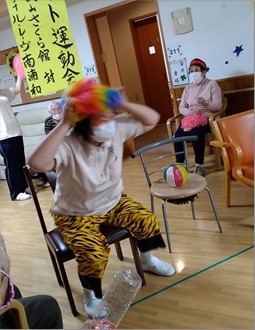 この日のために、ご利用者様と一緒に飾りを作り、玉入れの玉を作成し、応援合戦の練習も行い準備してきました。