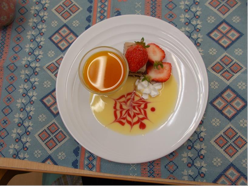 シェフの方が、ソースをいろいろな形にデザインしてくれて、女性は特にうっとりです。