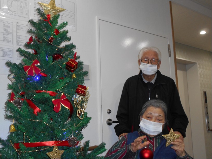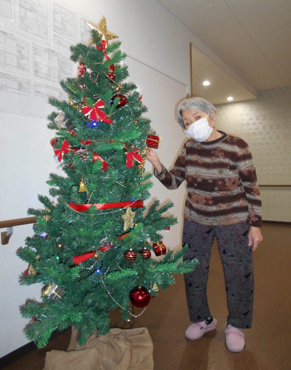 コロナ禍の中、『ル・レーヴ新白岡』では、ご入居者様に季節感を味わっていただくために、職員と一緒にクリスマスツリーを飾りました♪