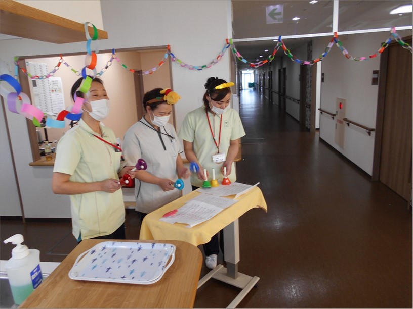 職員によるハンドベル「赤鼻のトナカイ」を演奏させていただきました。