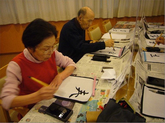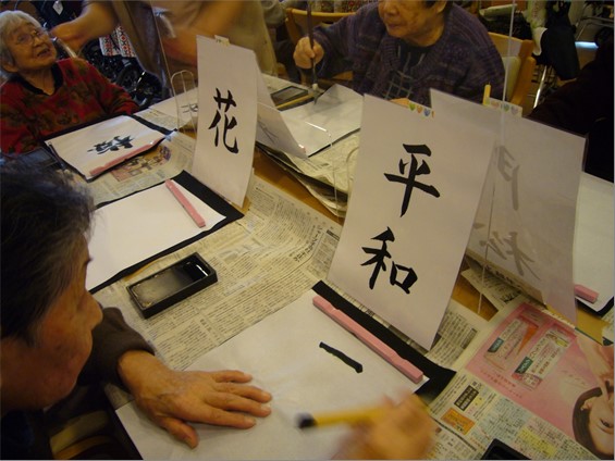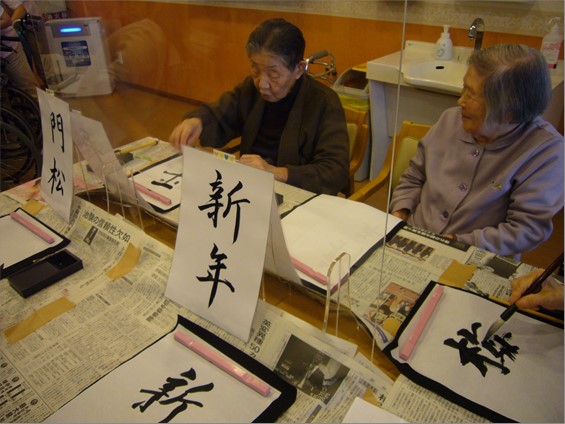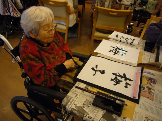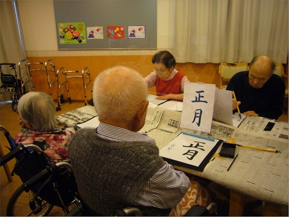 1月5日(火)の午後、『住宅型有料老人ホーム ハートフルヴィラ出来島』では、「書初め会」を開きました。