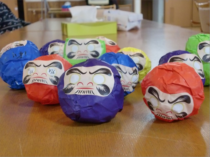 新聞紙をダルマの形に丸めることに皆さま苦戦されておりましたが、出来上がりを見ると、とても上手に特製ダルマが完成しておりました。