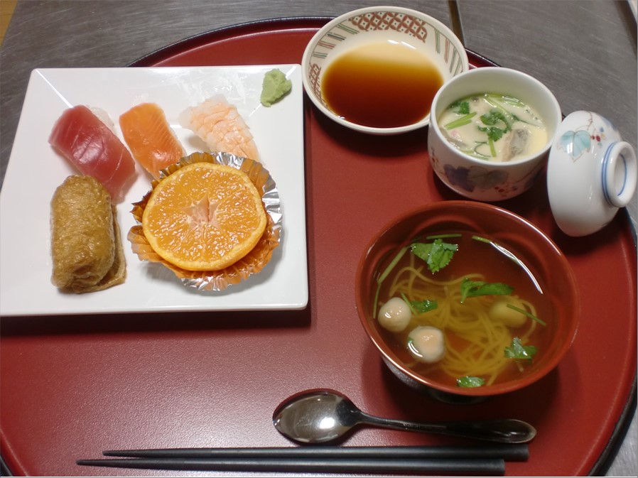 ・お寿司(マグロ、エビ、サーモン、いなり寿司)