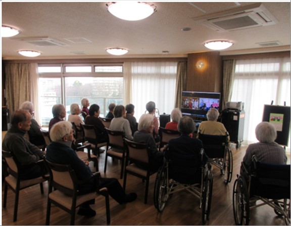 当日はご入居者の皆様とテレビ画面前に参列し、ご祈祷を開始しました。