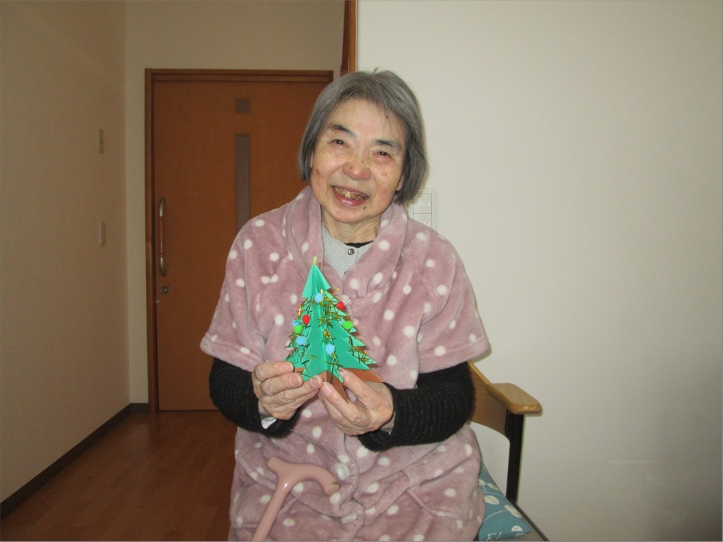 出来上がったツリーを見て「あらかわいい」「初めてやってみたけど良かったわ」「これでクリスマスが来るわ」などと仰っていました。
