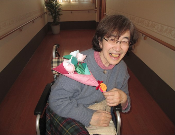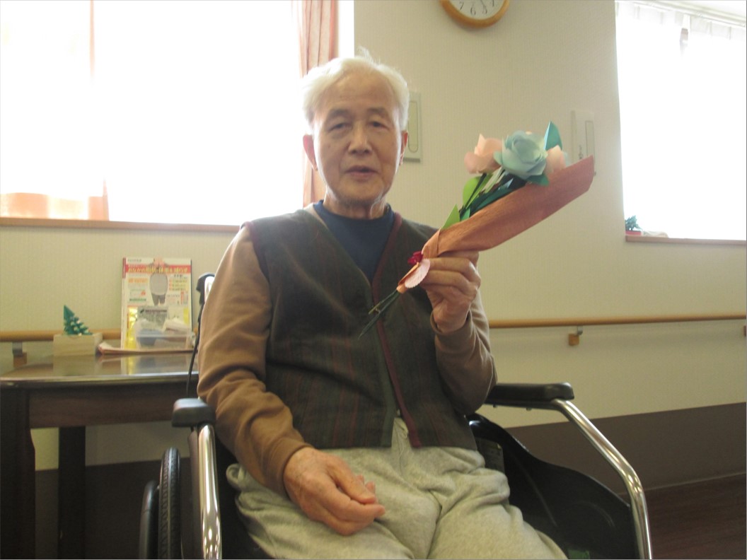 今月のお誕生日の方は60代から90代の方までバラエティに富んでいます。 今年度からはお誕生日プレゼントに手作りの花束を差し上げました。