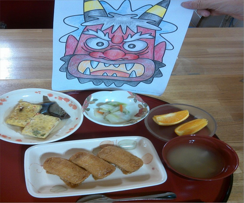 豆まきレクリエーションはご利用者様全員で楽しみました。