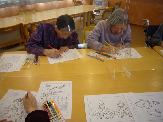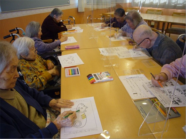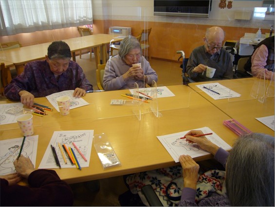 2月9日(火)の午後、『住宅型有料老人ホーム ハートフルヴィラ出来島』では、恒例の「塗り絵・パズル」レクをおこないました。